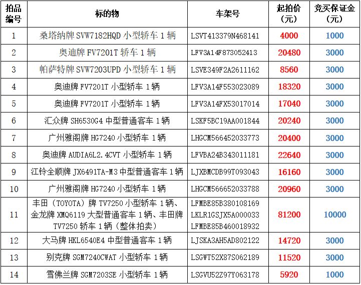 3、競買人可根據自己的需要,報名一個或多個標的。不同標的競買保證金不同。競買人參與一個標的競買需交納該標的對應的保證金,參加多個標的競買的需繳納多個標的對應的保證金。競買人繳納保證金的標的須與實際參與競買的標的相對應,否則該標的競買無效。